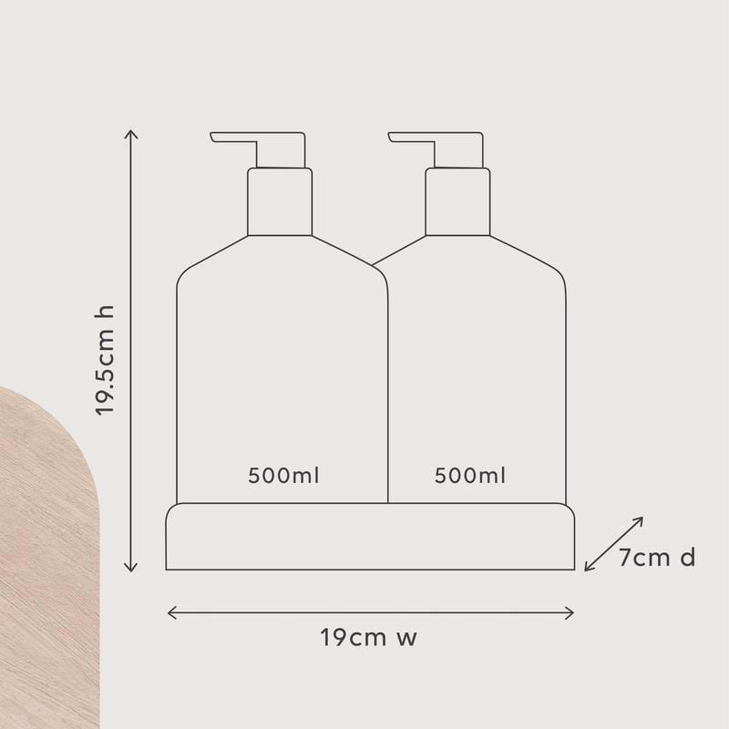 The Duo includes a 500ml hand & body wash, 500ml hand & body lotion and a matching tray.